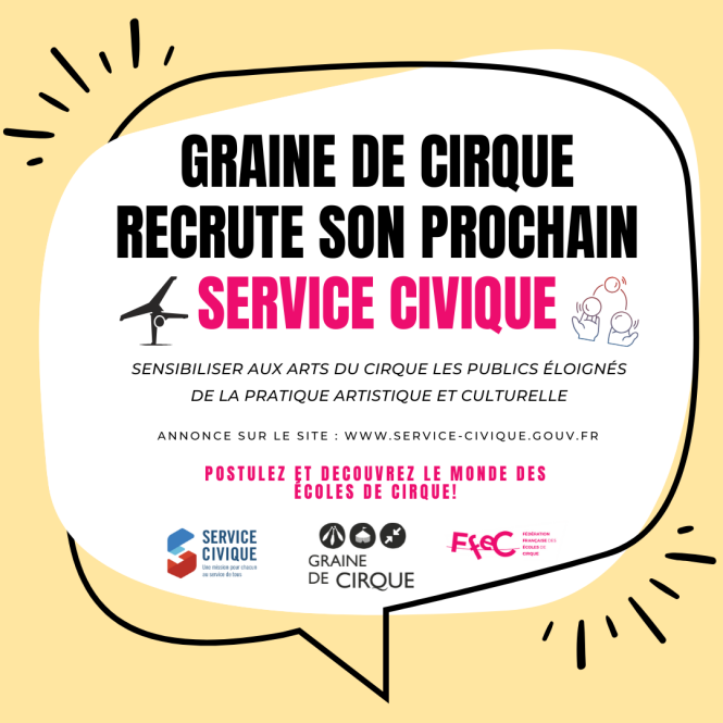 🎪 OFFRE SERVICE CIVIQUE 2025-2026 : GRAINE DE CIRQUE RECRUTE SON PROCHAIN SERVICE CIVIQUE ! 🎪